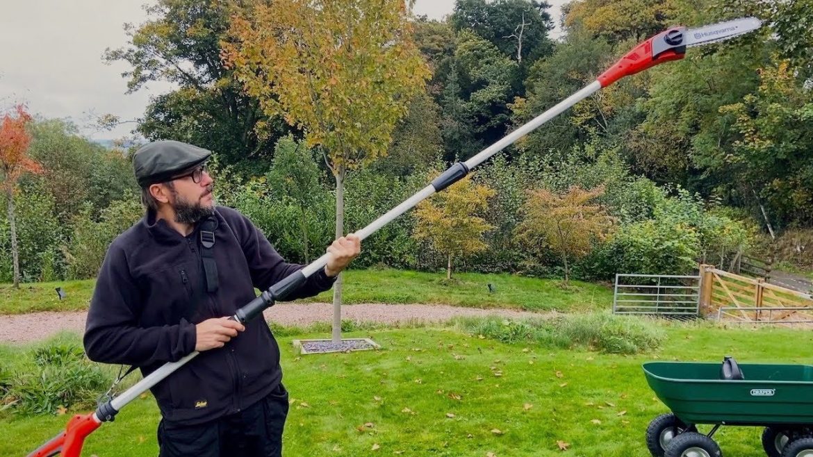 Last year, we used loppers and saws (standing on a ladder) to prune trees around our smallholding. This year, we’re using our newly acquired cordless Husqvarna 115iPT4 Pole Saw to get the job done.