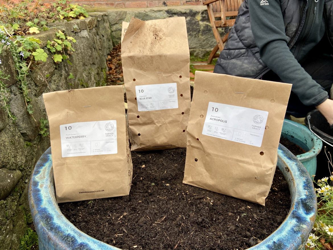 With the first batch of spring bulbs (double daffodils, giant bluebells and crocuses) in the ground, the latest consignment of Farmer Gracy bulbs arrived.